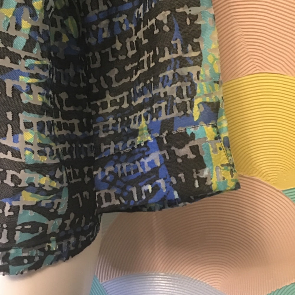 Drapery’s & Damon’s long sleeve shirt multicolor size PM button up shirt with big black buttons has two pockets in front with buttons, it has a sheer design.