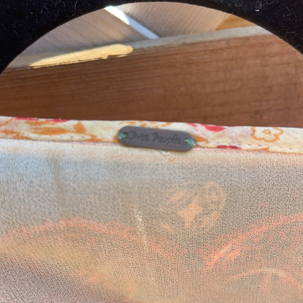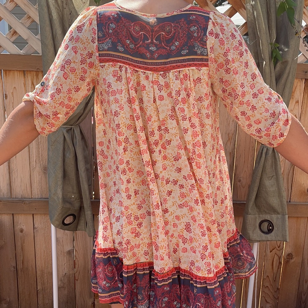Free people dress short sleeves with pockets peach red paisley print