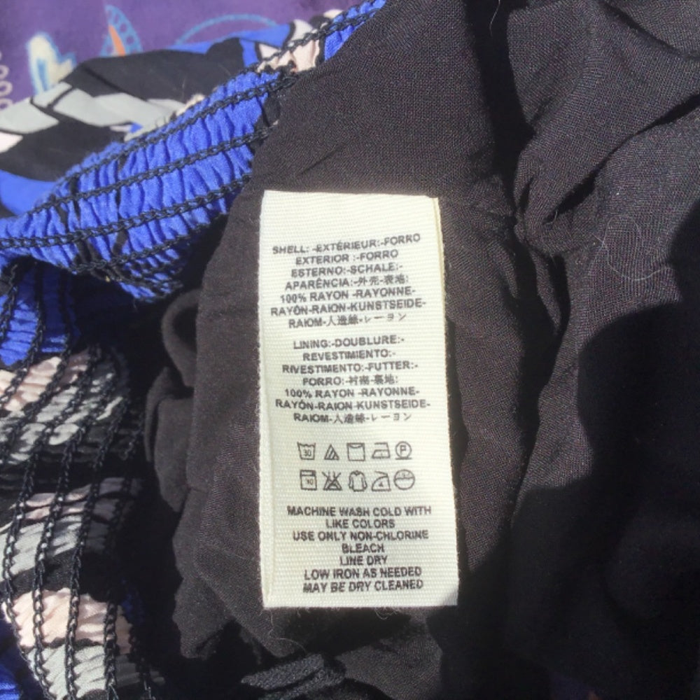 Free people dress with its flows sleeves and airy fabric super cool flower pattern with the blue and black. The scrunchy top makes it fit most bust size.