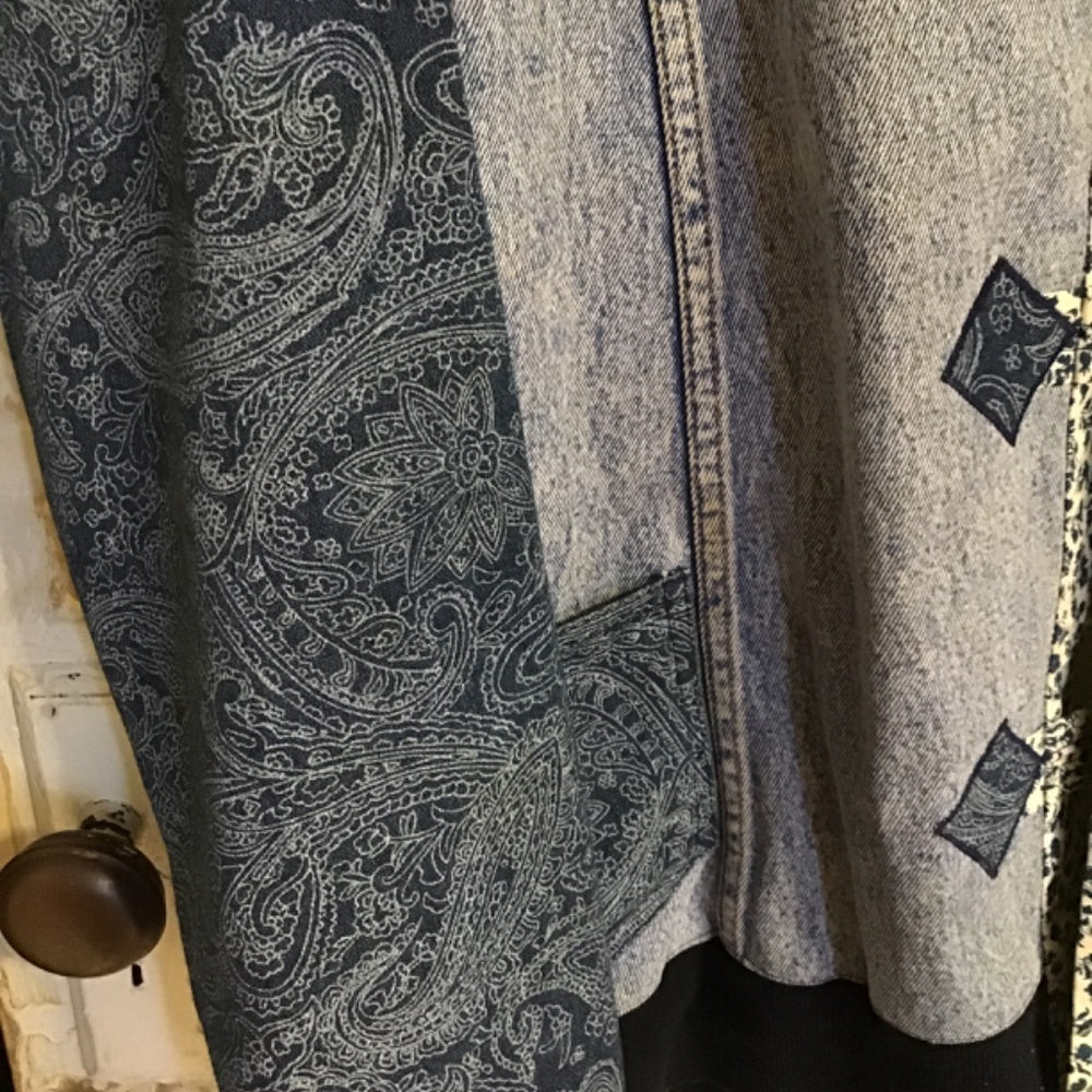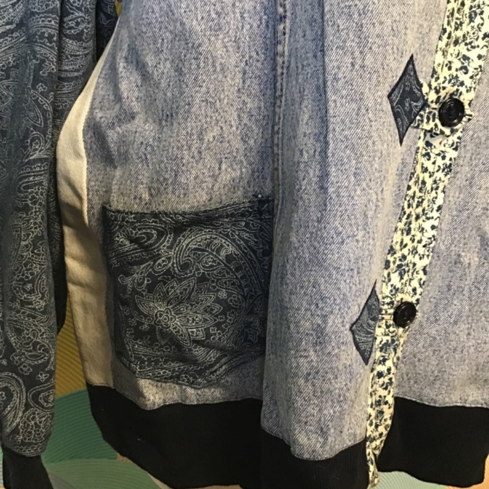 Beautiful handmade vintage denim jacket can be worn with a contemporary look or if you like retro, this may be the one for you. Button up center, with pockets on the outside. Floral design on the exterior along with a cute heart pin.