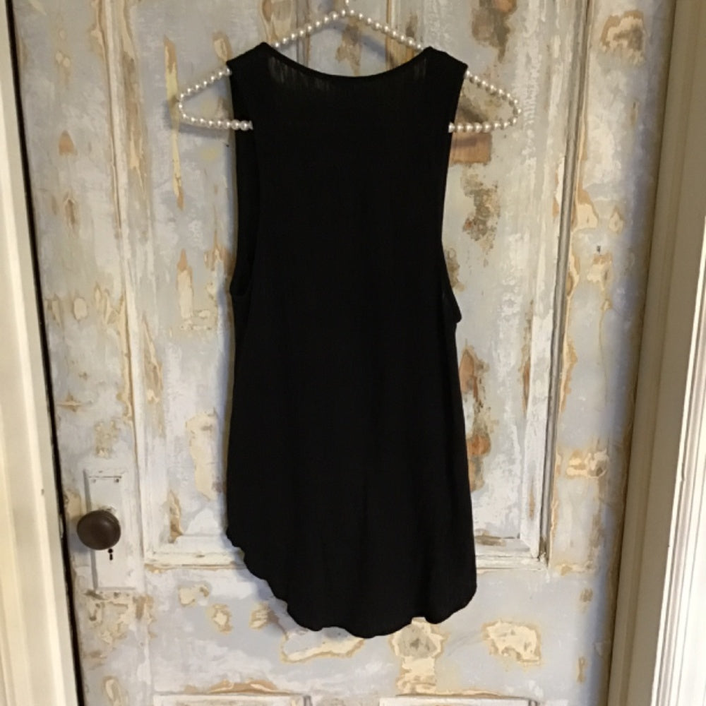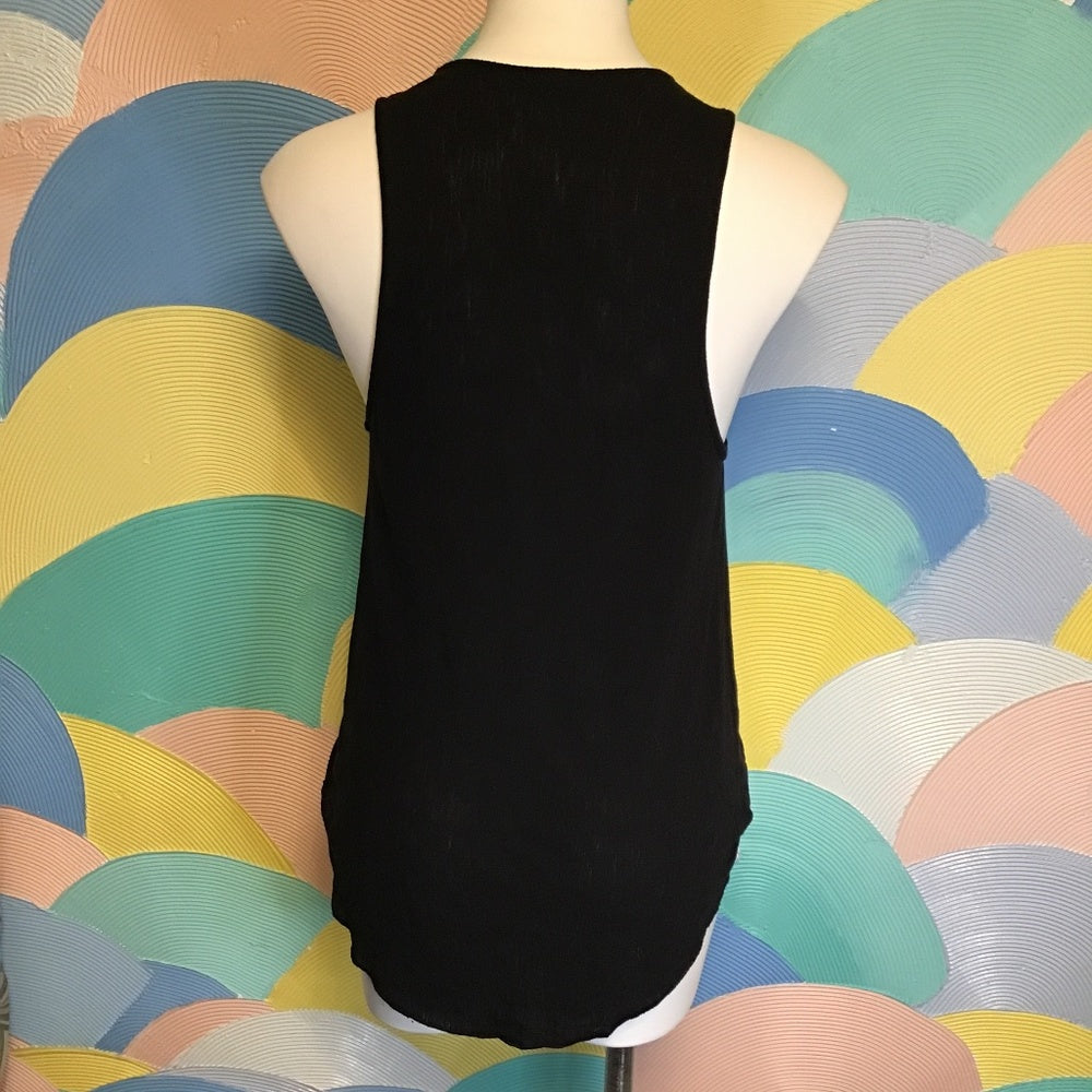 Silence + Noise black blouse, Slender and sexy, this blouse by S+N is super sharp. Very lightweight and comfortable for a warmer evening out. Formal but revealing in the chest. Show them what you got. Straps cover the breast region but leave open the center.