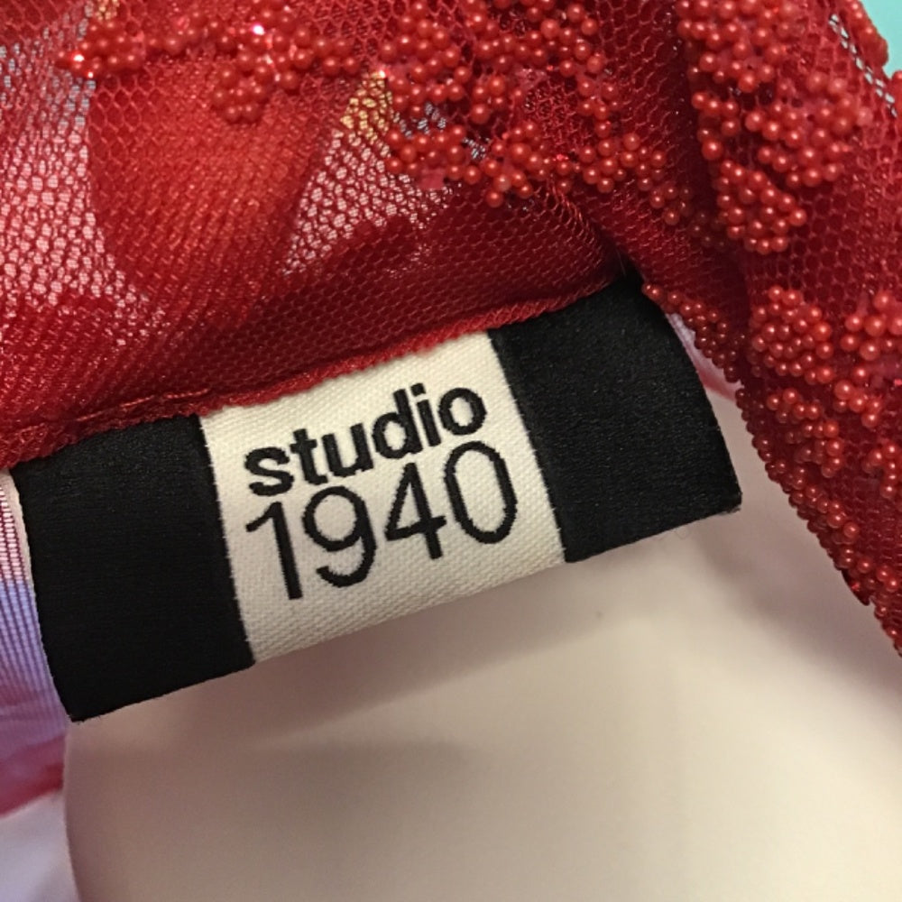 Studio 1940 red long sleeve blouse sparkly flowers and buttons.