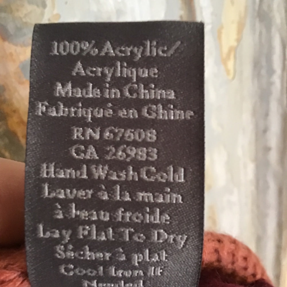 Scoop up this very modern Vince Camuto scarf and stay super warm during that cooler season. One size fits all and has a soft acrylic feel. Free hat to go along with scarf. 100% acrylic comes with the free hat.