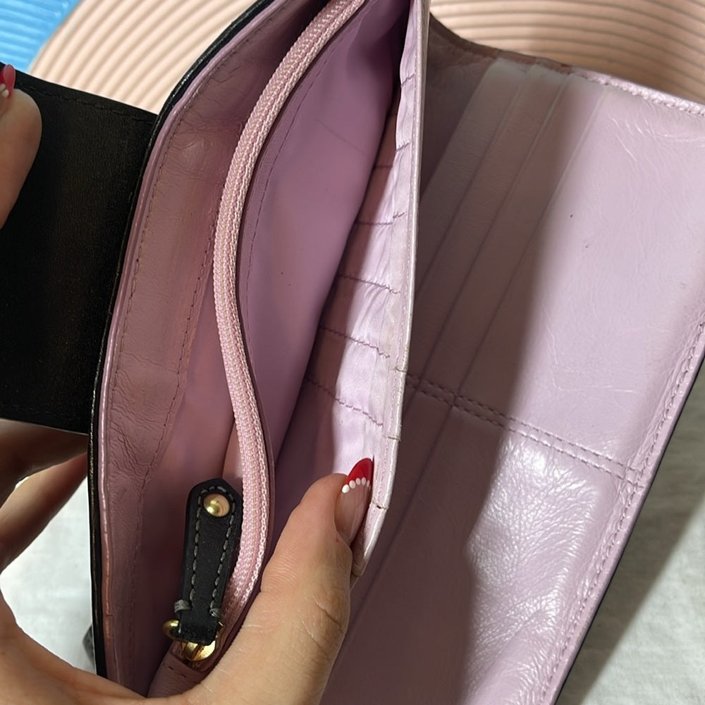 Vintage, coach, wallet, light pink inside black fabric on the outside & leather