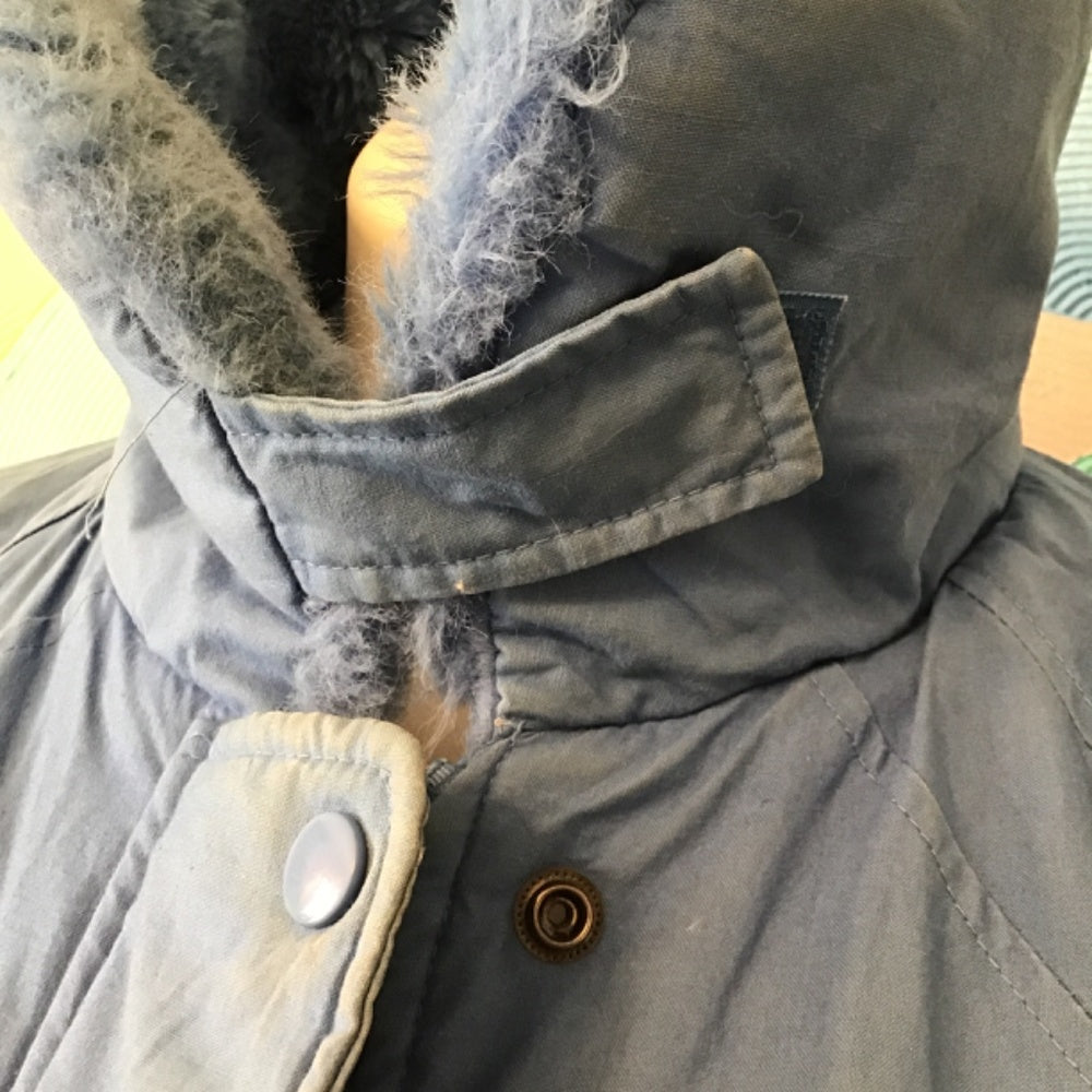Winning edge London fog coat with fur collar perfect condition size 13/14 Reg color baby blue, some of the coloration has faded on some parts of the coat seen on pictures.